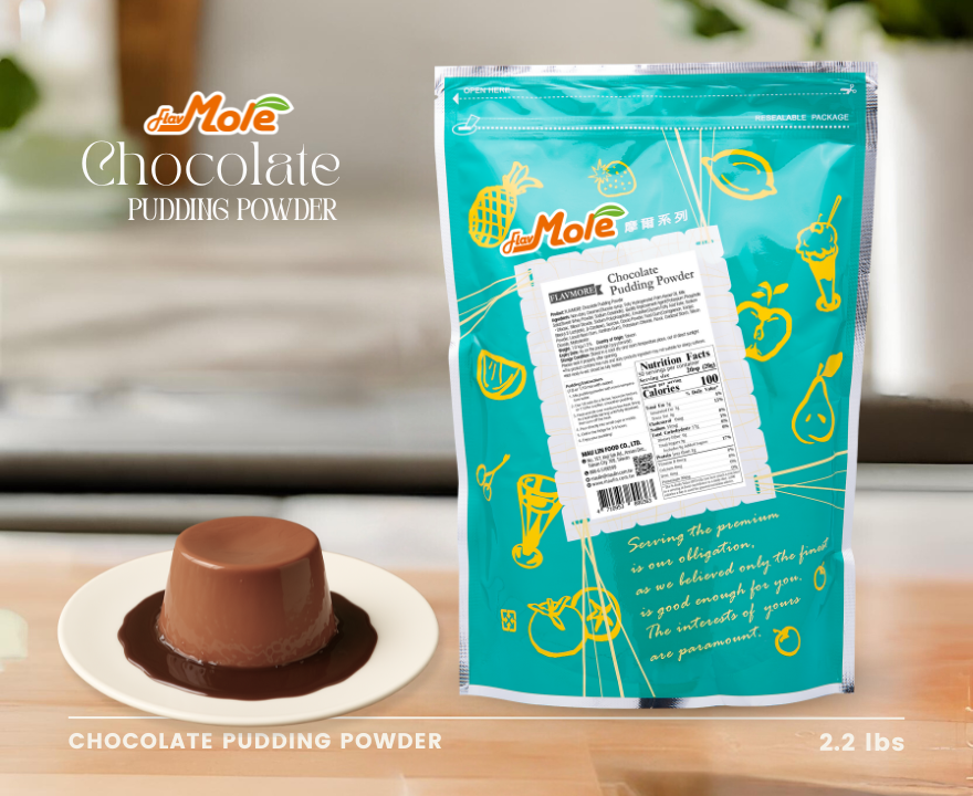 FlavMore Chocolate Pudding Sha is made by Maulin with high-quality chocolate powder. With the simple instruction, it only takes less than five steps to make, refrigerate or stay at room temperature is both ways could form with different time. It is also suitable to mix with jelly, boba or any other topping you like. Our Chocolate Pudding Sha is the best choice for desserts and beverages. Catering industry and homemade are all recommended.