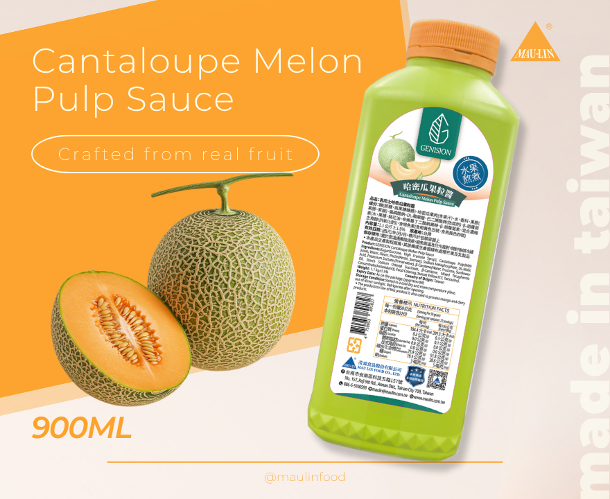 GENISION Cantaloupe Melon Pulp Sauce is made with fresh cantaloupe and boiled directly to preserve the pulp and fibers of cantaloupe. The concentration of cantaloupe pulp is higher than 40%. With a small amount of GENISION Cantaloupe Melon Pulp Sauce, you can experience the rich sweet taste of cantaloupe with smoothies, milk, iced products, and more.