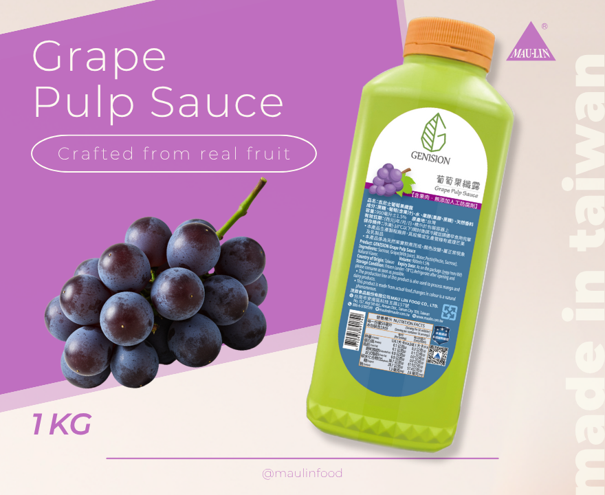- With its rich fruit granule texture and emphasis on fresh and original flavor, GENISION Grape Pulp Sauce is suitable for creating high-end products, such as grape soda or grape black tea in Japanese-style cafes.