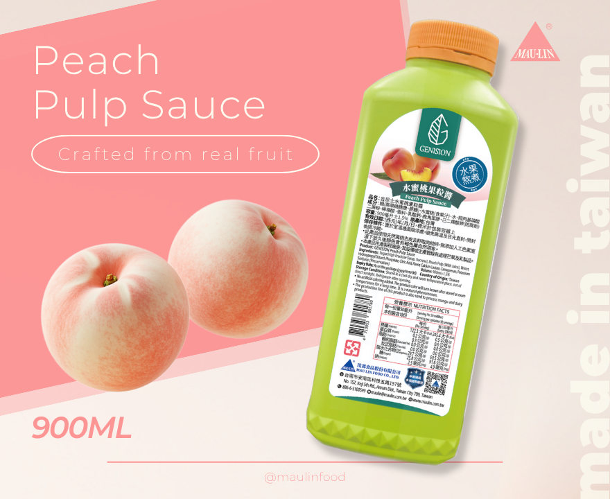 - Real Peach: GENISION Peach Pulp Sauce is made with peeled yellow peaches using quick-freezing techniques. It has chunks of peach and white peach juice, resulting in a sweet and tart aroma.