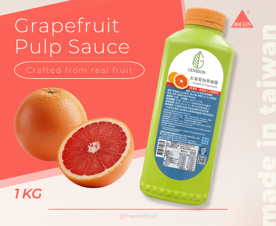 GENISION Grapefruit Pulp Sauce contains grapefruit juice and pulp fiber with no preservatives. It can simply make grapefruit juice with water or add to a variety of drinks to present the grapefruit flavor.